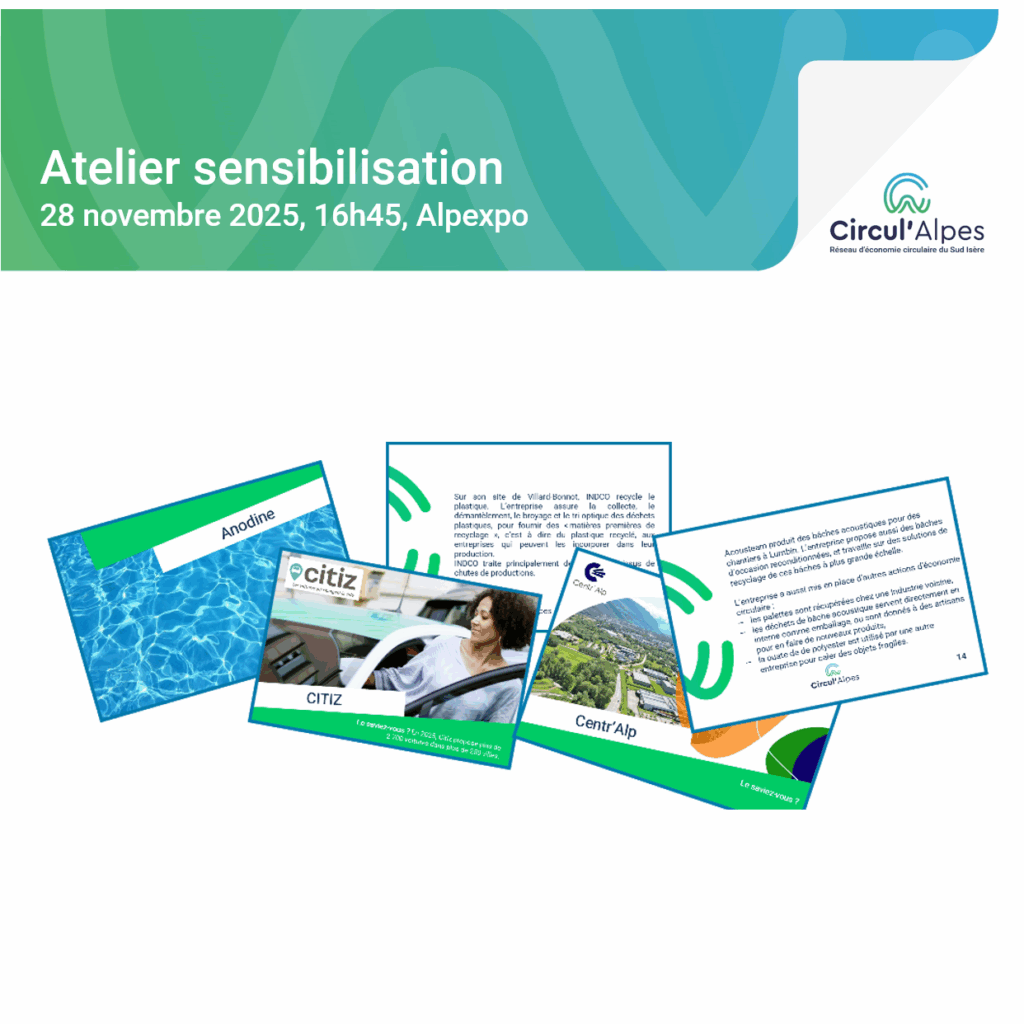 Recyclage, réemploi…mais aussi nouveaux modèles économiques et éco-conception : l’économie circulaire c’est tout ça à la fois ! Venez découvrir les solutions locales derrière ces concepts grâce à notre atelier de sensibilisation de 1h30 et ses 60 fiches d’acteurs locaux. Exposez également vos idées et problématiques pour rendre votre activité plus pérenne et vertueuse grâce à la circularité !
